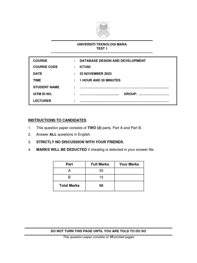 UiTM ID NO. : ……………......................... GROUP: ...…………………….