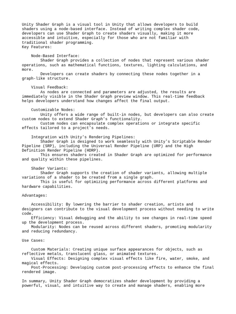In summary, Unity Shader Graph democratizes shader development by providing a