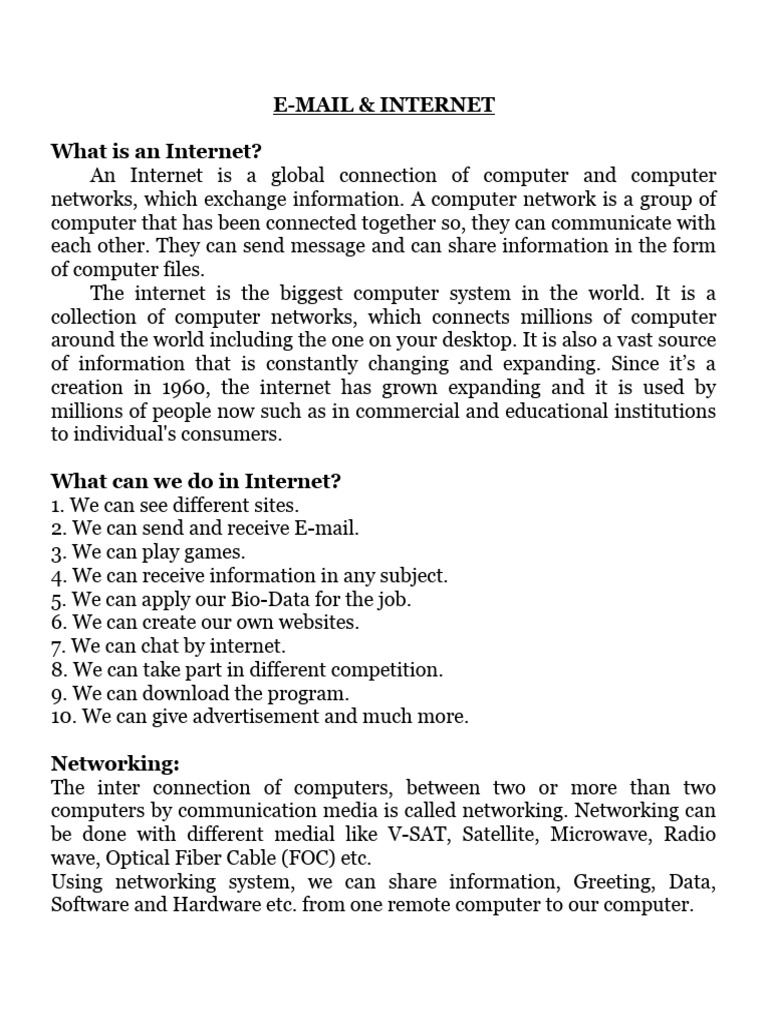 of Internet facility. E-mail and Internet are the example of WAN. E-mail