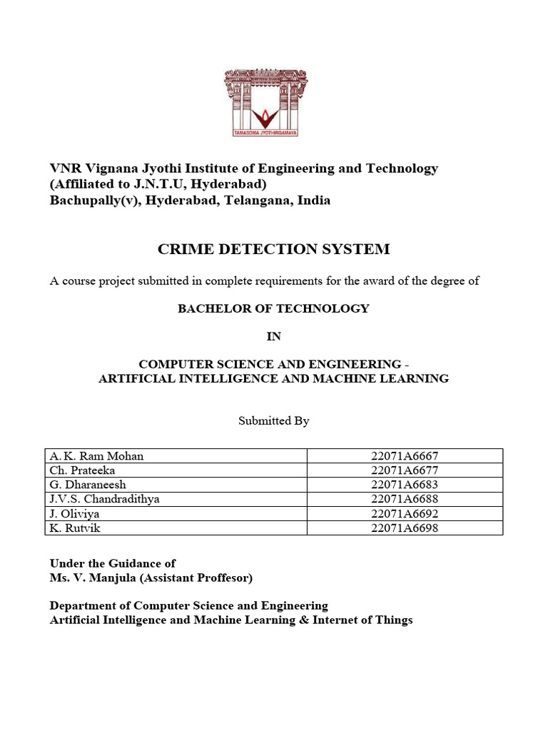 Department of VNR VJIET, Hyderabad entitled "CRIME DETECTION SYSTEM"