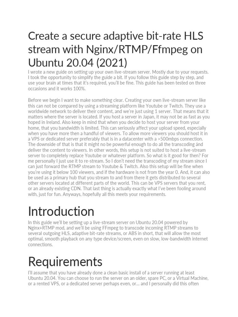 In this guide we’ll be setting up a live-stream server on Ubuntu 20.04 powered by