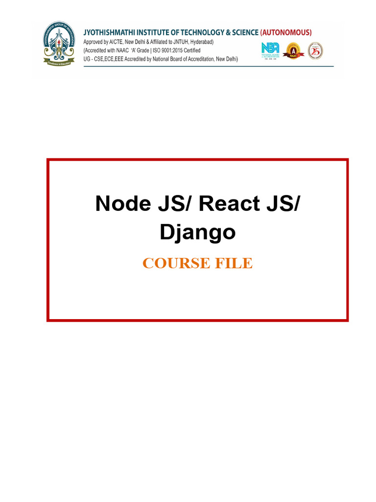 For Node JS/ React JS/ Django, the course will enable the students to: