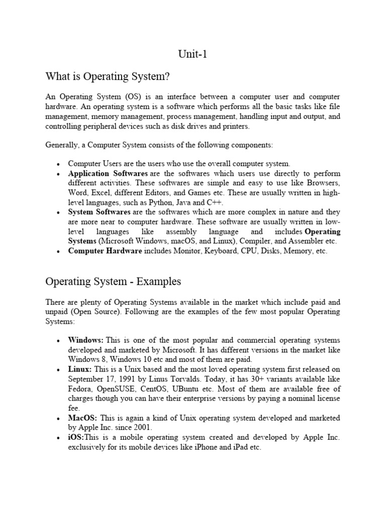 unpaid (Open Source). Following are the examples of the few most popular Operating