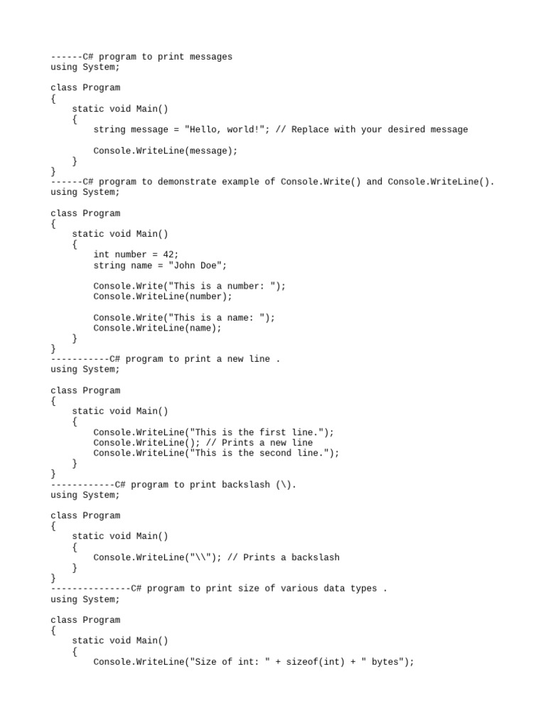 ------C# program to demonstrate example of Console.Write() and Console.WriteLine().
