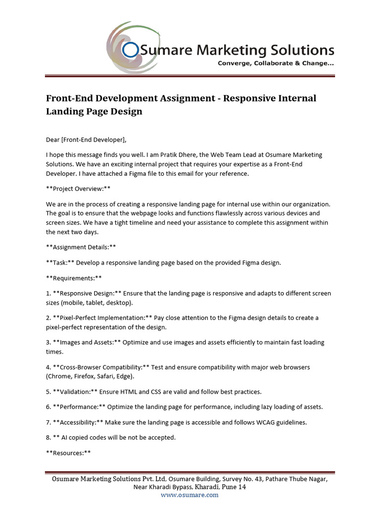 I hope this message finds you well. I am Pratik Dhere, the Web Team Lead at Osumare Marketing