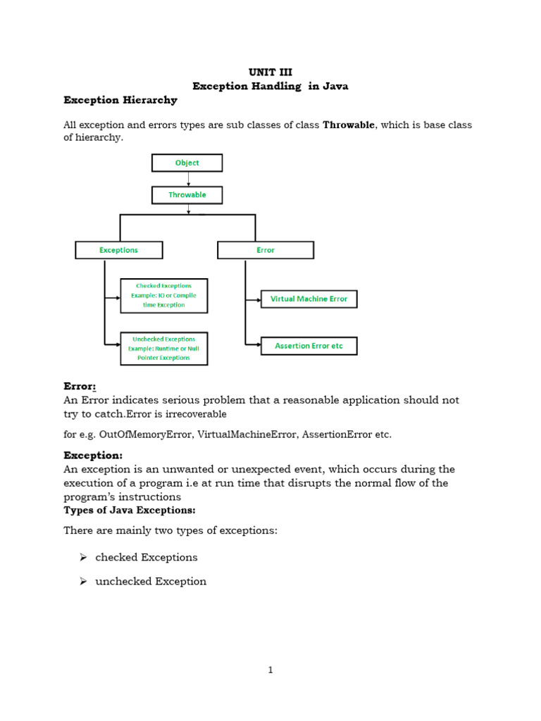 ● Unchecked exceptions are not occurred at checked at compile-time, but