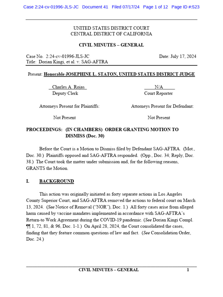 Before the Court is a Motion to Dismiss filed by Defendant SAG-AFTRA. (Mot.,