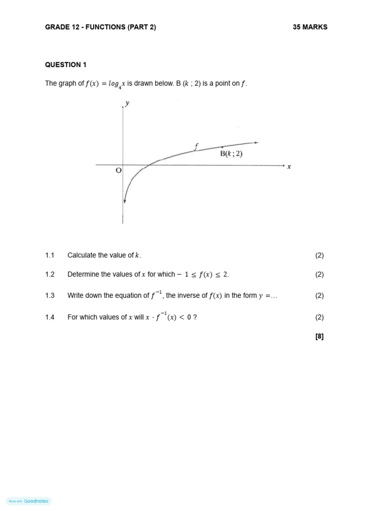 GRADE 12 - FUNCTIONS (PART 2) 35 MARKS
