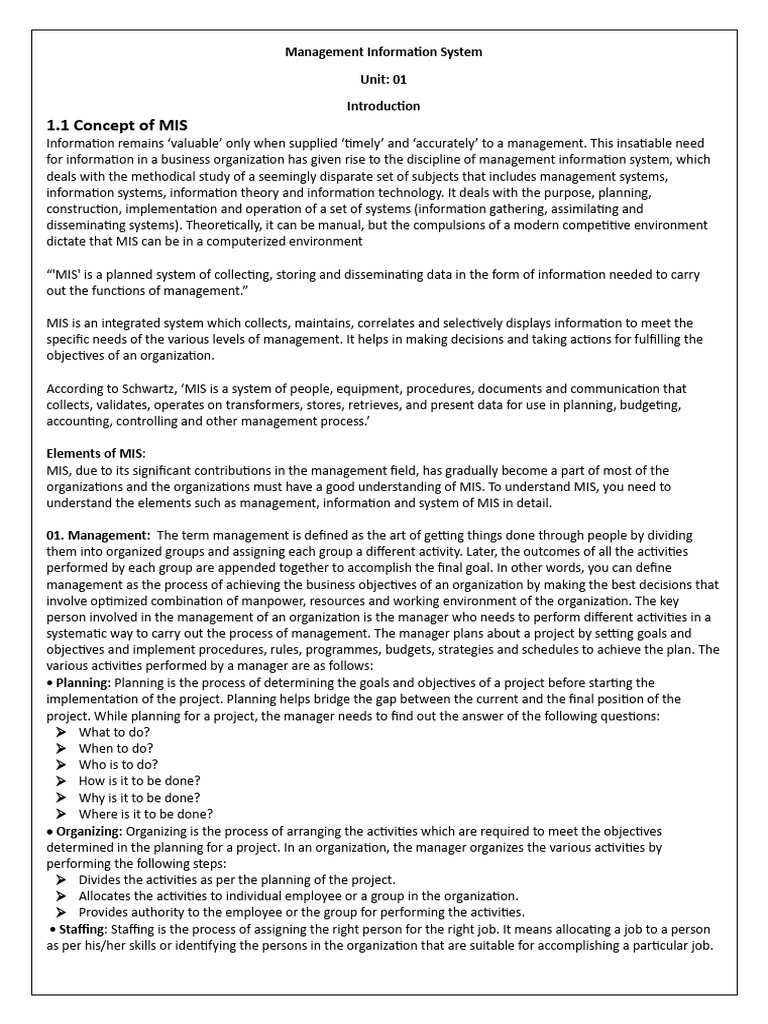 01. Management: The term management is defined as the art of getting things done through people by dividing