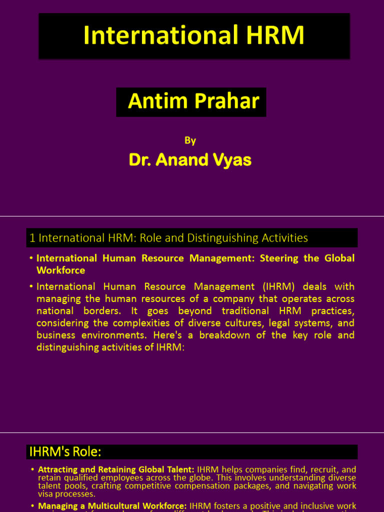 • Ensuring Global Compliance: IHRM ensures the company adheres to labor