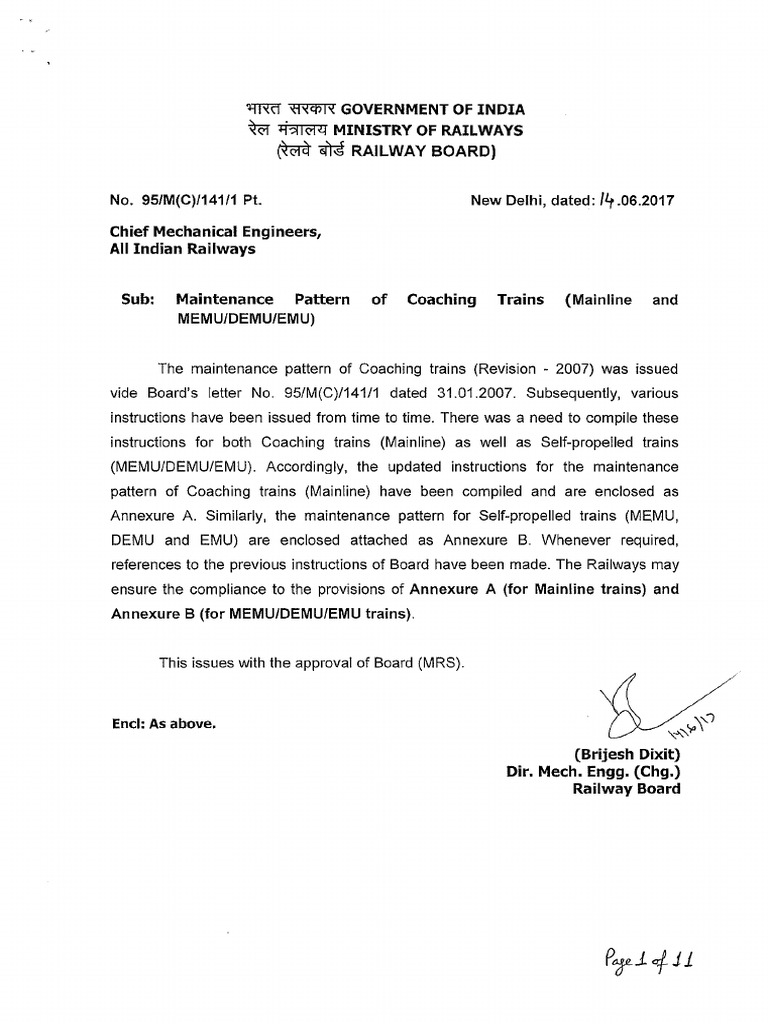 pattern of Coaching trains (Mainline) have been compiled and are enclosed as