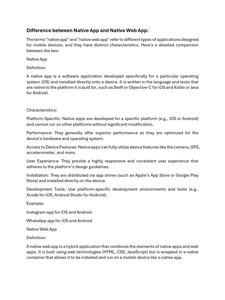 Platform-Specific: Native apps are developed for a specific platform (e.g., iOS or Android)