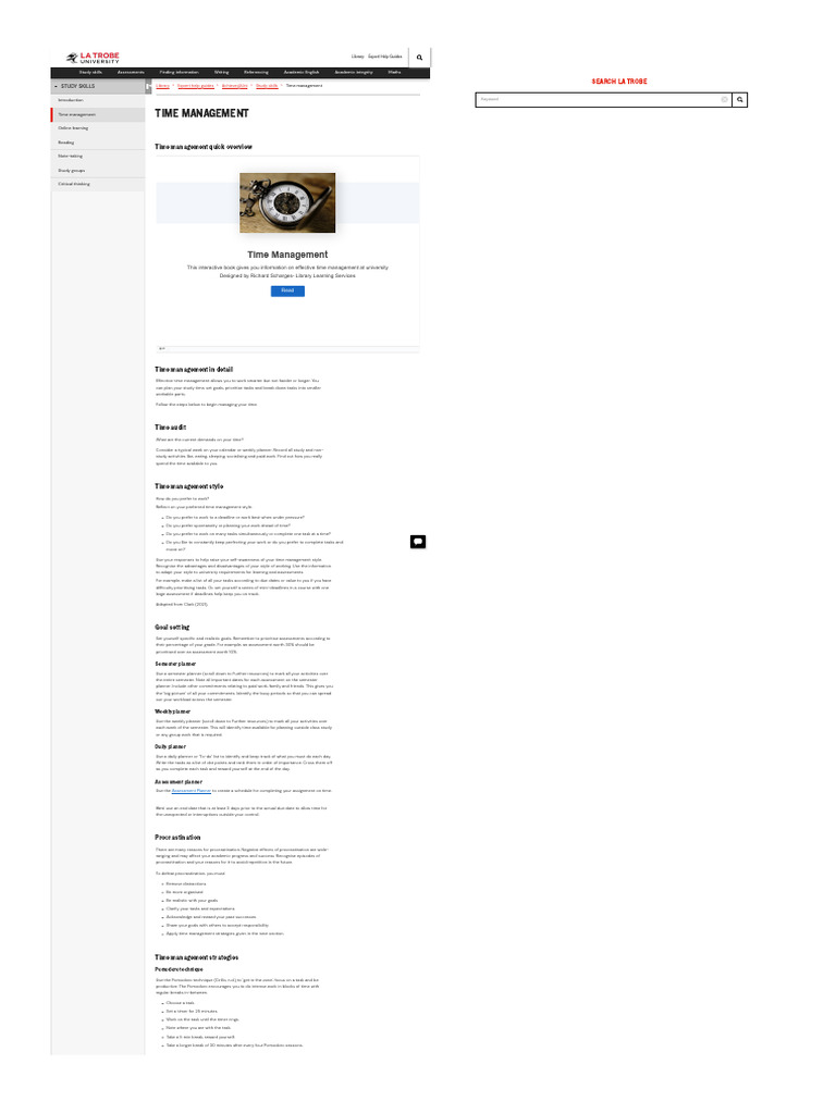 STUDY SKILLS ◀ Library > Expert help guides > Achieve@Uni > Study skills > Time management