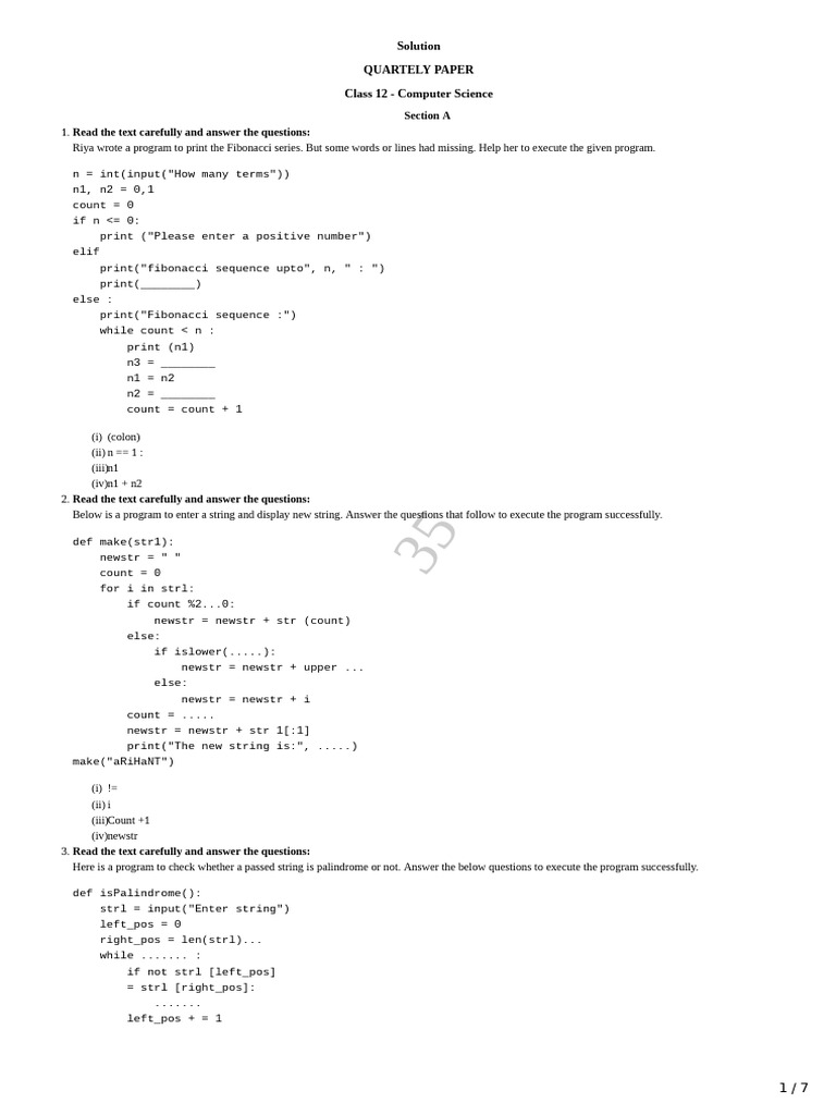 Here is a program to check whether a passed string is palindrome or not. Answer the below questions to execute the program successfully.