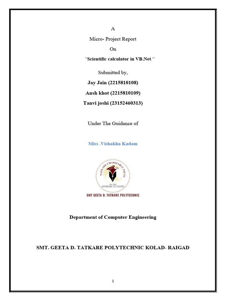 SMT. GEETA D. TATKARE POLYTECHNIC KOLAD- RAIGAD