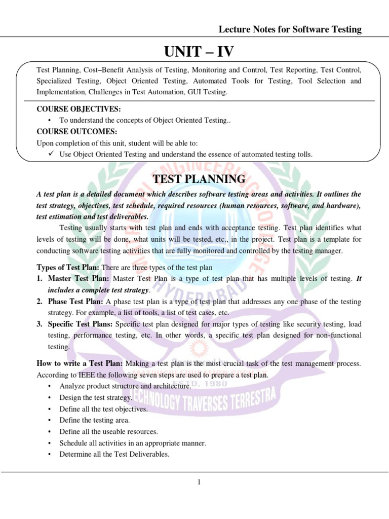 levels of testing will be done, what units will be tested, etc., in the project. Test plan is a template for