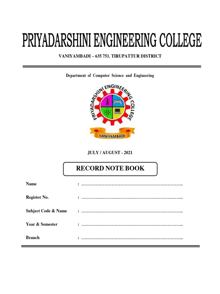 VANIYAMBADI – 635 751. TIRUPATTUR DISTRICT