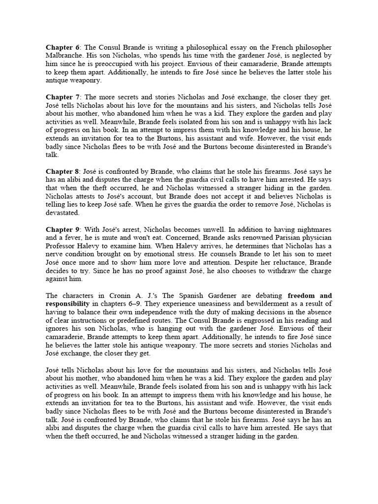 The characters in Cronin A. J.'s The Spanish Gardener are debating freedom and