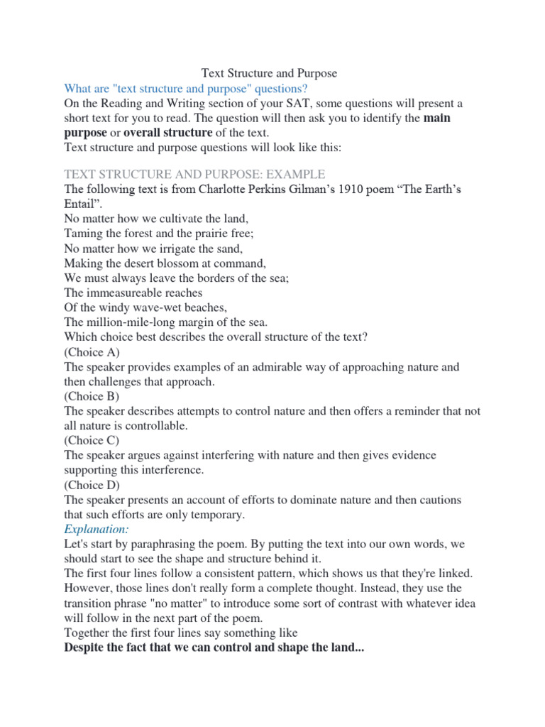How to approach text structure and purpose questions