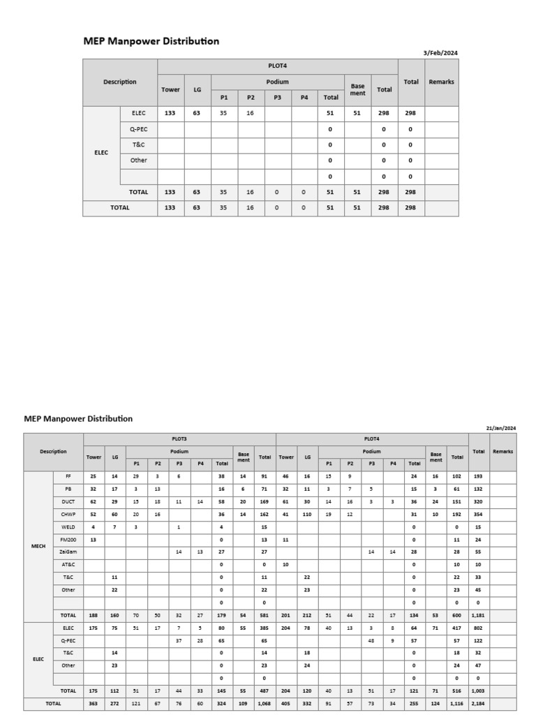 MEP Manpower Distribution