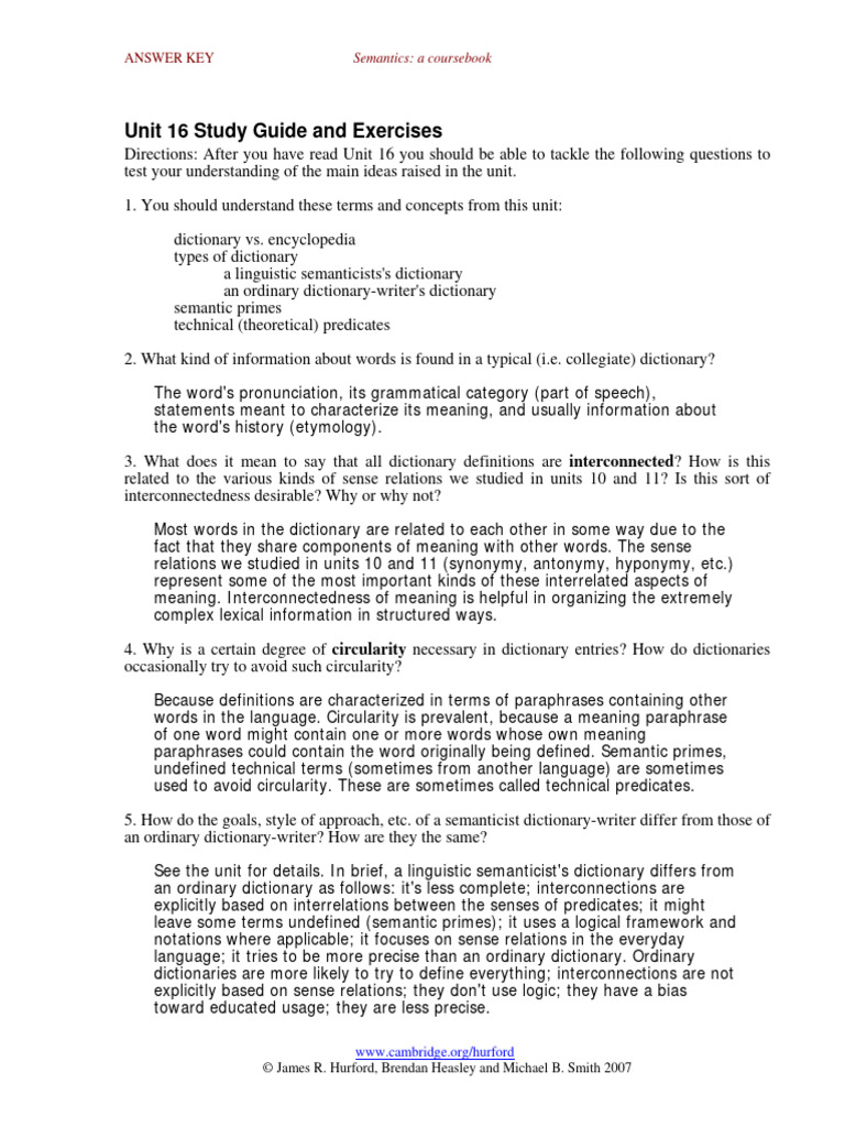 ANSWER KEY Semantics: a coursebook