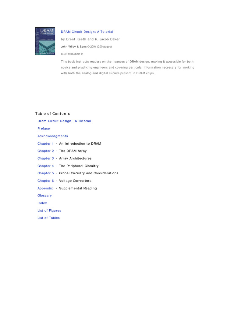 DRAM circuit design: a tutorial/Brent Keeth, R.Jacob Baker.