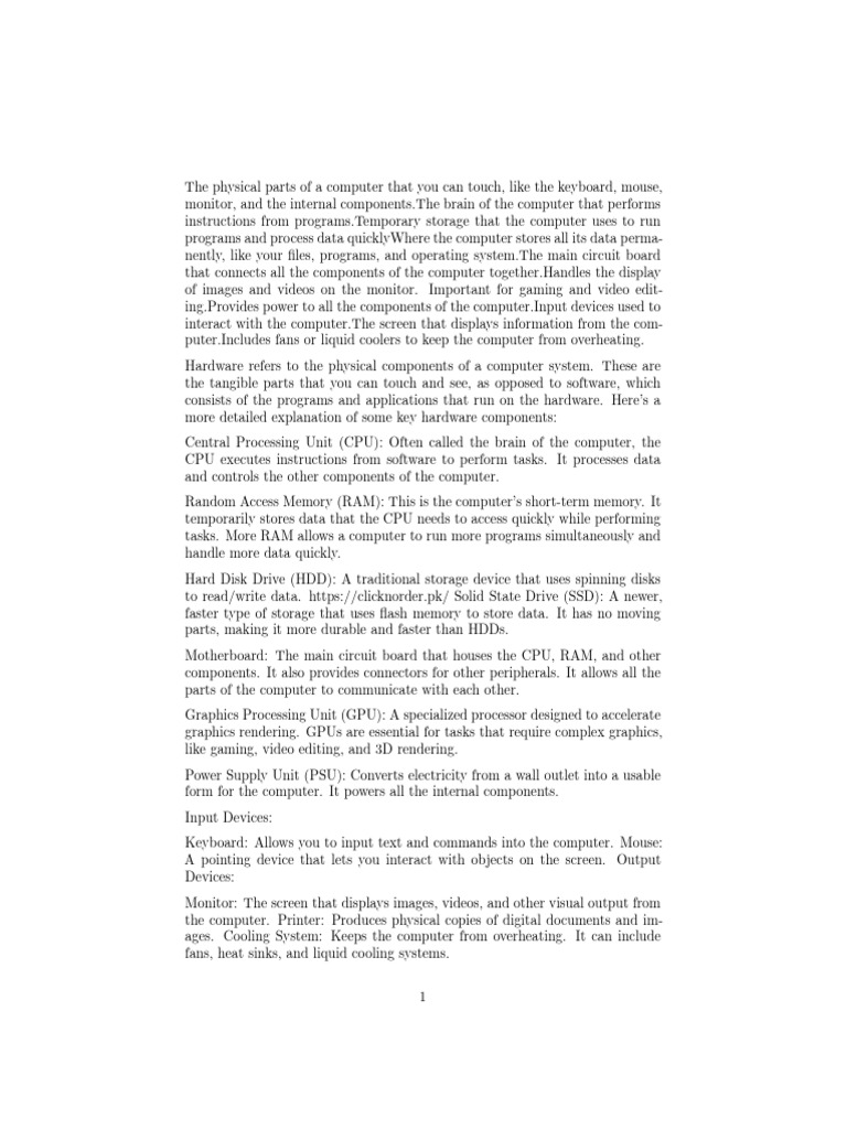 Keyboard: Allows you to input text and commands into the computer. Mouse: