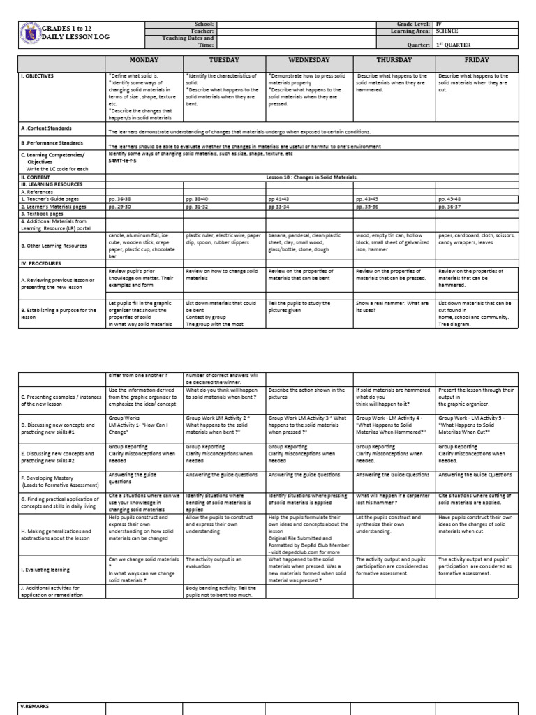 II. CONTENT Lesson 10 : Changes in Solid Materials.