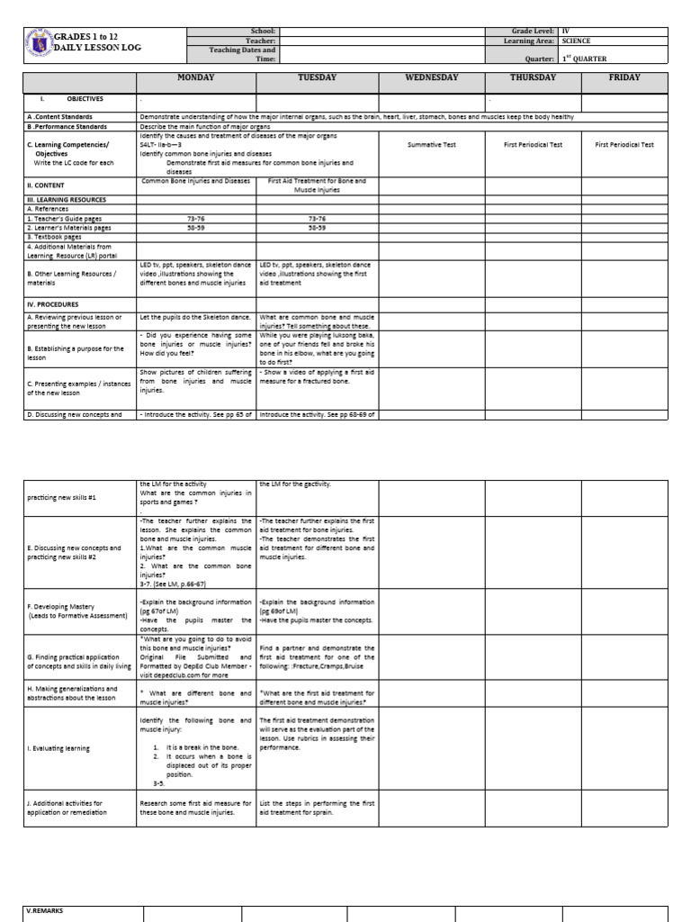 of concepts and skills in daily living Formatted by DepEd Club Member - following: :Fracture,Cramps,Bruise