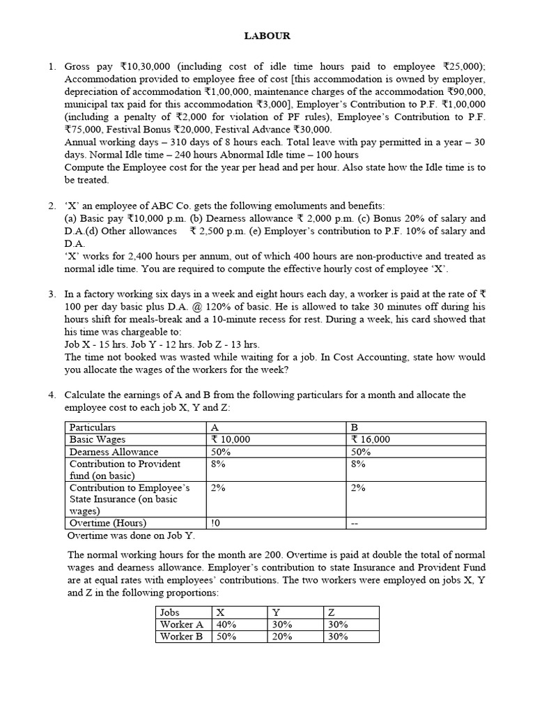 normal idle time. You are required to compute the effective hourly cost of employee ‘X’.