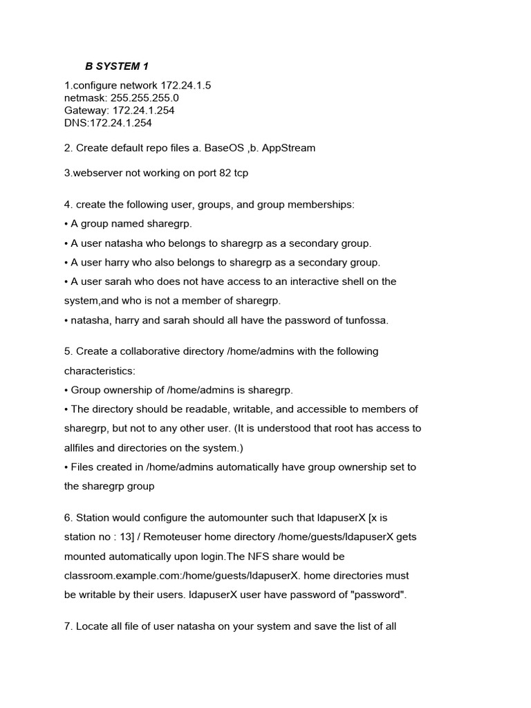 • A user natasha who belongs to sharegrp as a secondary group.