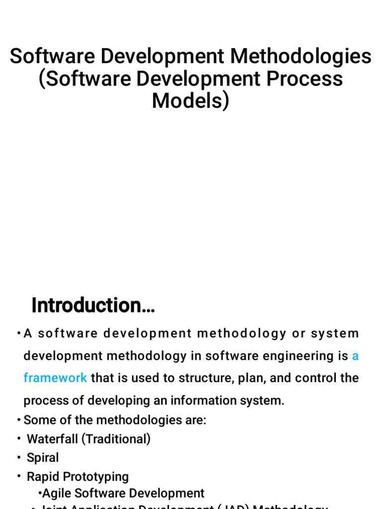 • A so f t w a re d e v e lo p m e nt m e t ho d o lo g y o r sy st e m
