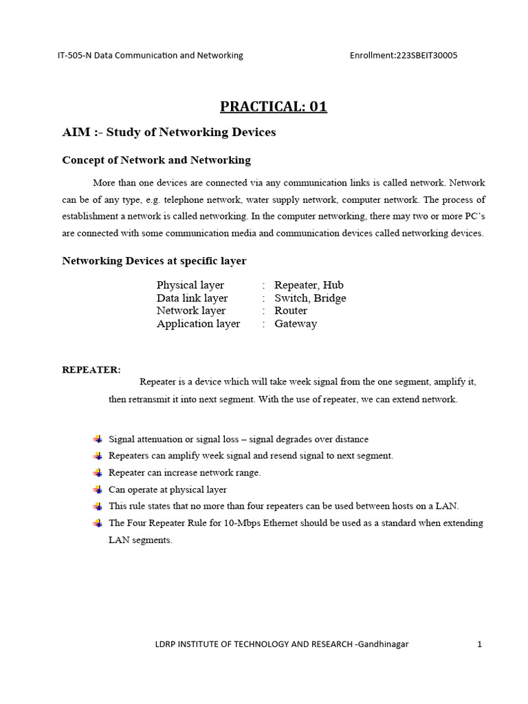 IT-505-N Data Communication and Networking Enrollment:223SBEIT30005