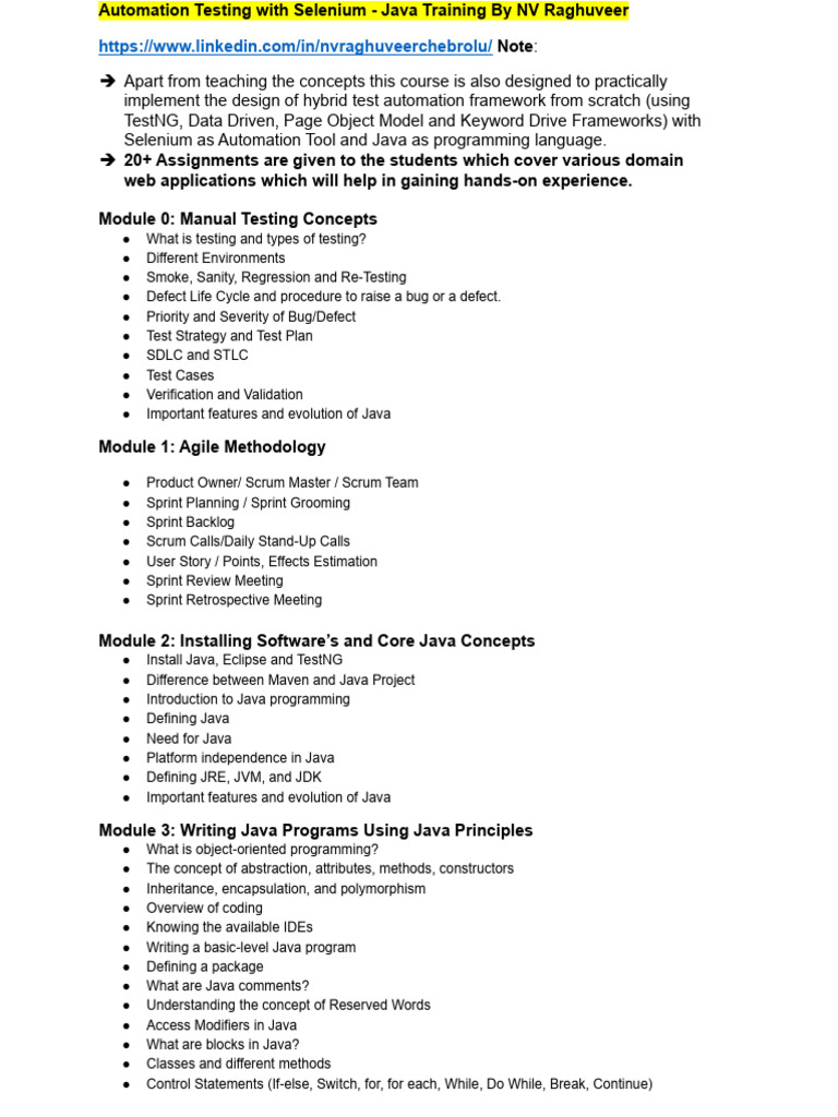 Automation Testing with Selenium - Java Training By NV Raghuveer