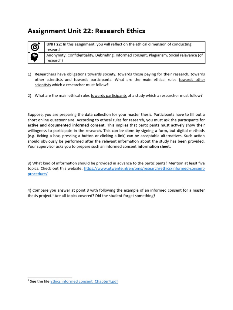 UNIT 22: In this assignment, you will reflect on the ethical dimension of conducting