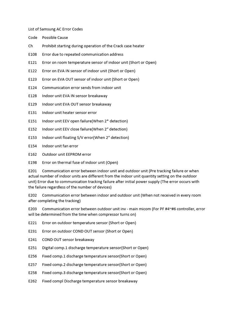 List of Samsung AC Error Codes