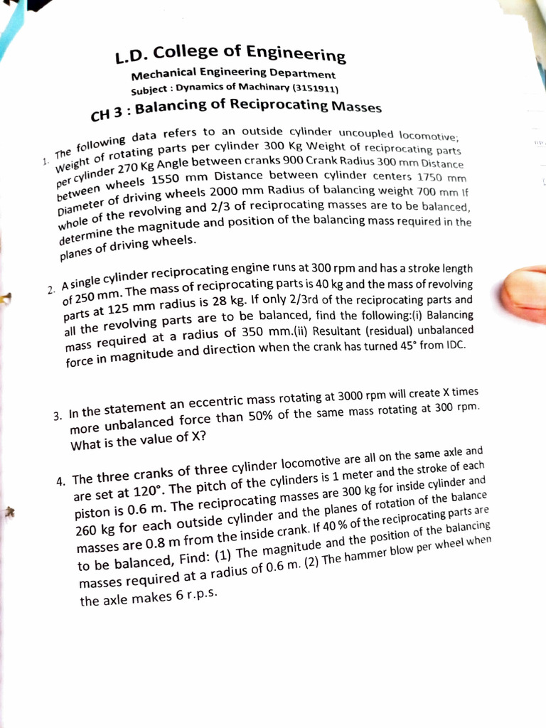 mm radius is 28 kg. If only 2/3rd ofthe reciprocating parts and