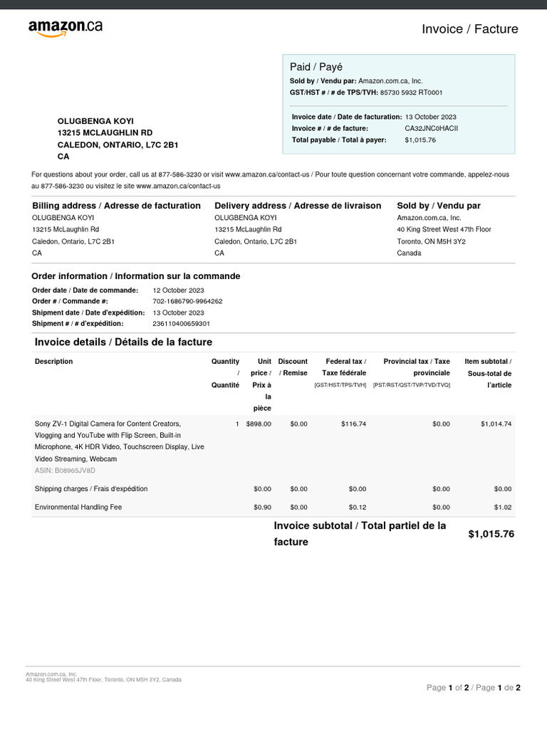 OLUGBENGA KOYI OLUGBENGA KOYI Amazon.com.ca, Inc.