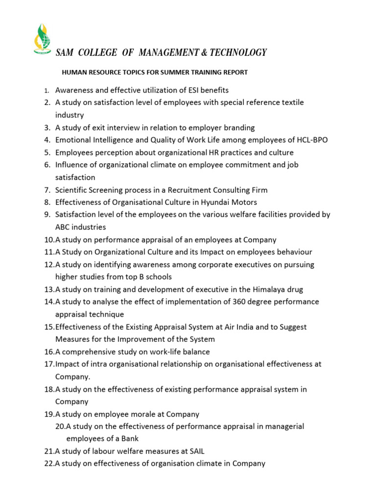HUMAN RESOURCE TOPICS FOR SUMMER TRAINING REPORT
