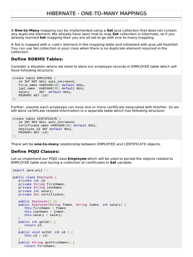 http://www.tutorialspoint.com/hibernate/hibernate_one_to_many_mapping.htm Copyright © tutorialspoint.com