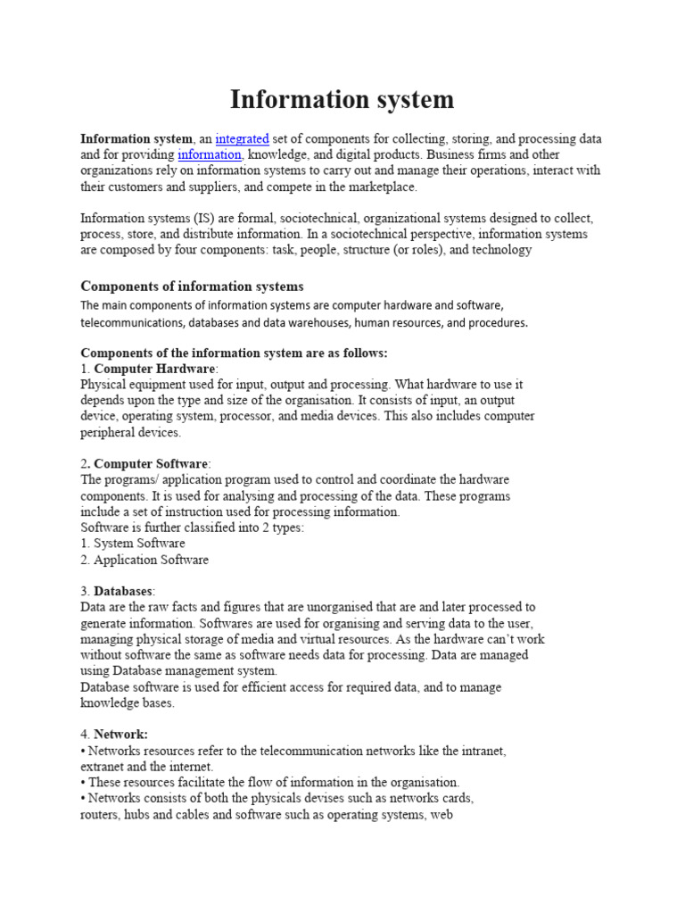 process, store, and distribute information. In a sociotechnical perspective, information systems
