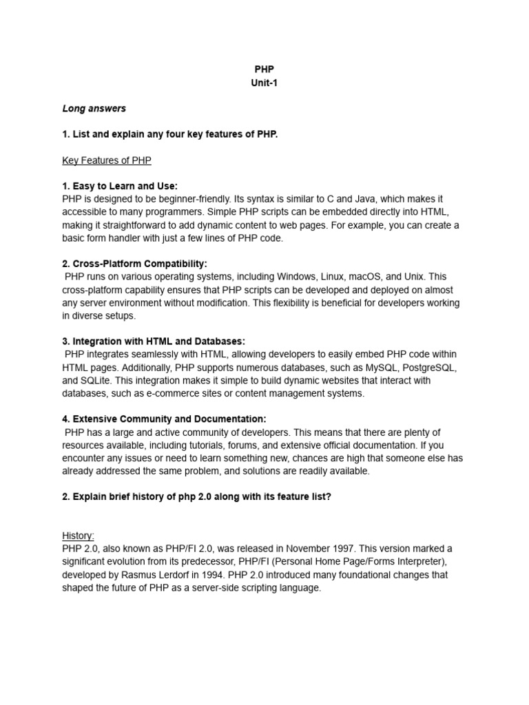 HTML pages. Additionally, PHP supports numerous databases, such as MySQL, PostgreSQL,