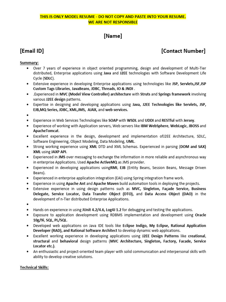 THIS IS ONLY MODEL RESUME - DO NOT COPY AND PASTE INTO YOUR RESUME.