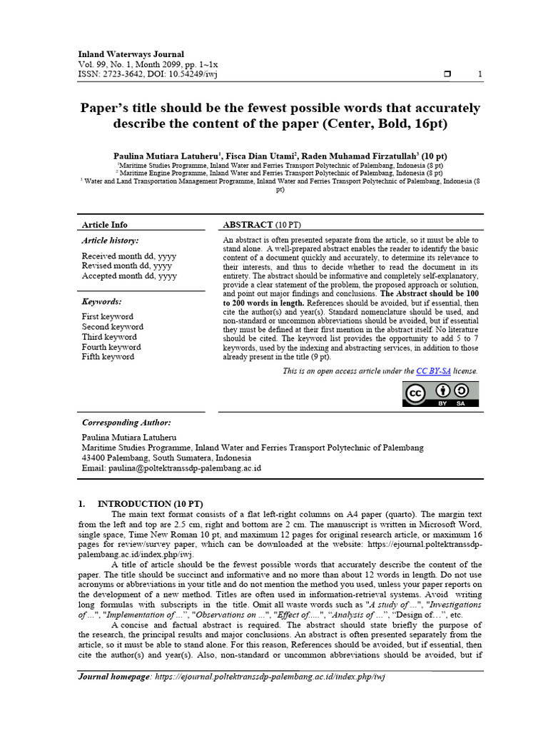 single space, Time New Roman 10 pt, and maximum 12 pages for original research article, or maximum 16