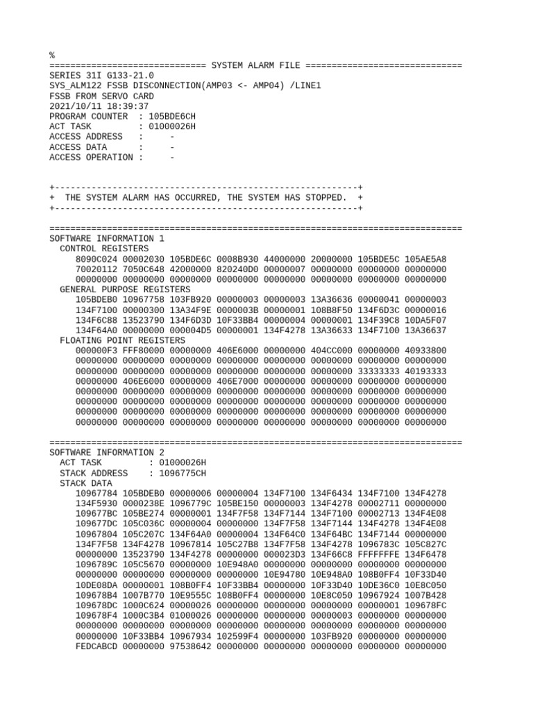 + THE SYSTEM ALARM HAS OCCURRED, THE SYSTEM HAS STOPPED. +