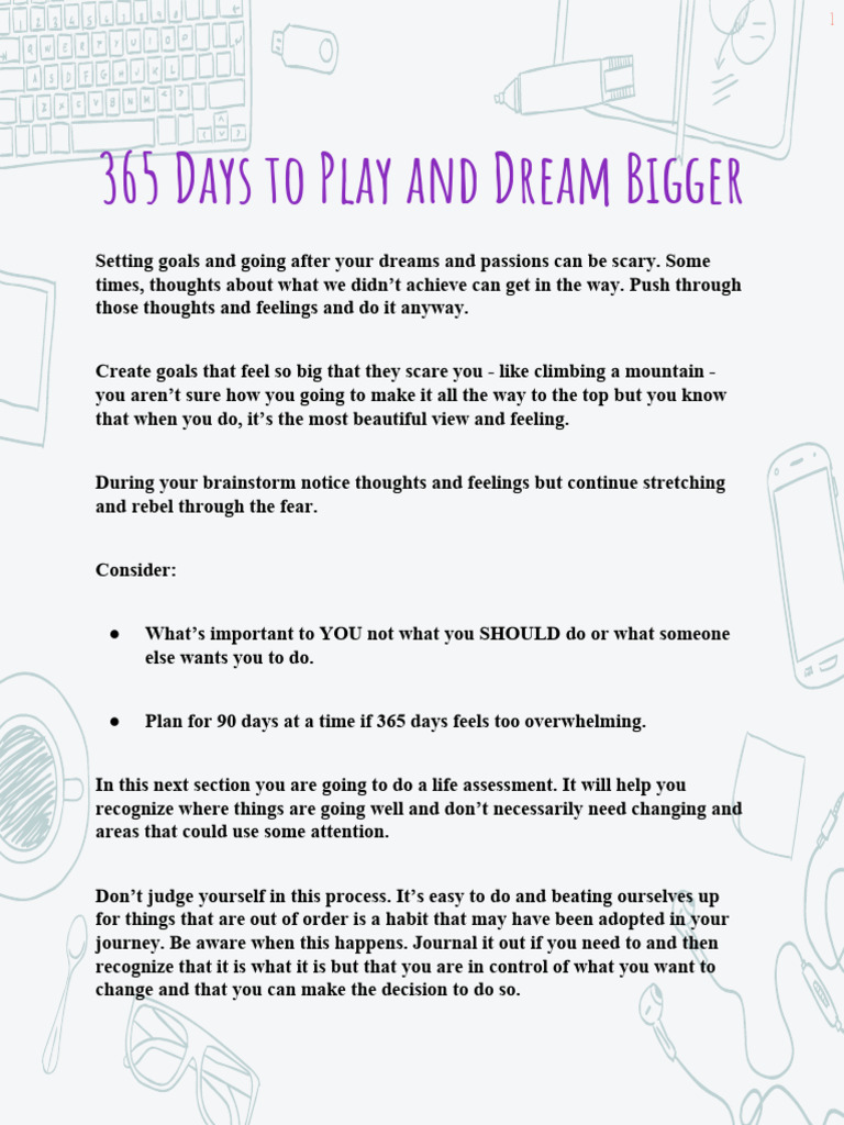 ● Plan for 90 days at a time if 365 days feels too overwhelming.
