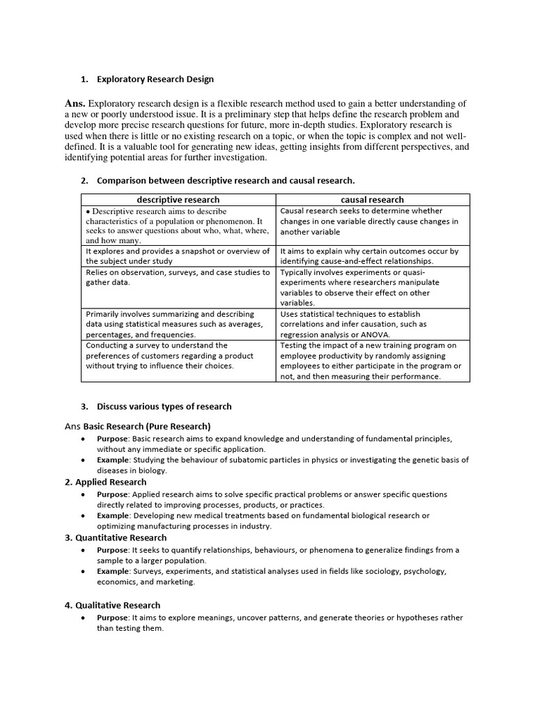 Ans. Exploratory research design is a flexible research method used to gain a better understanding of
