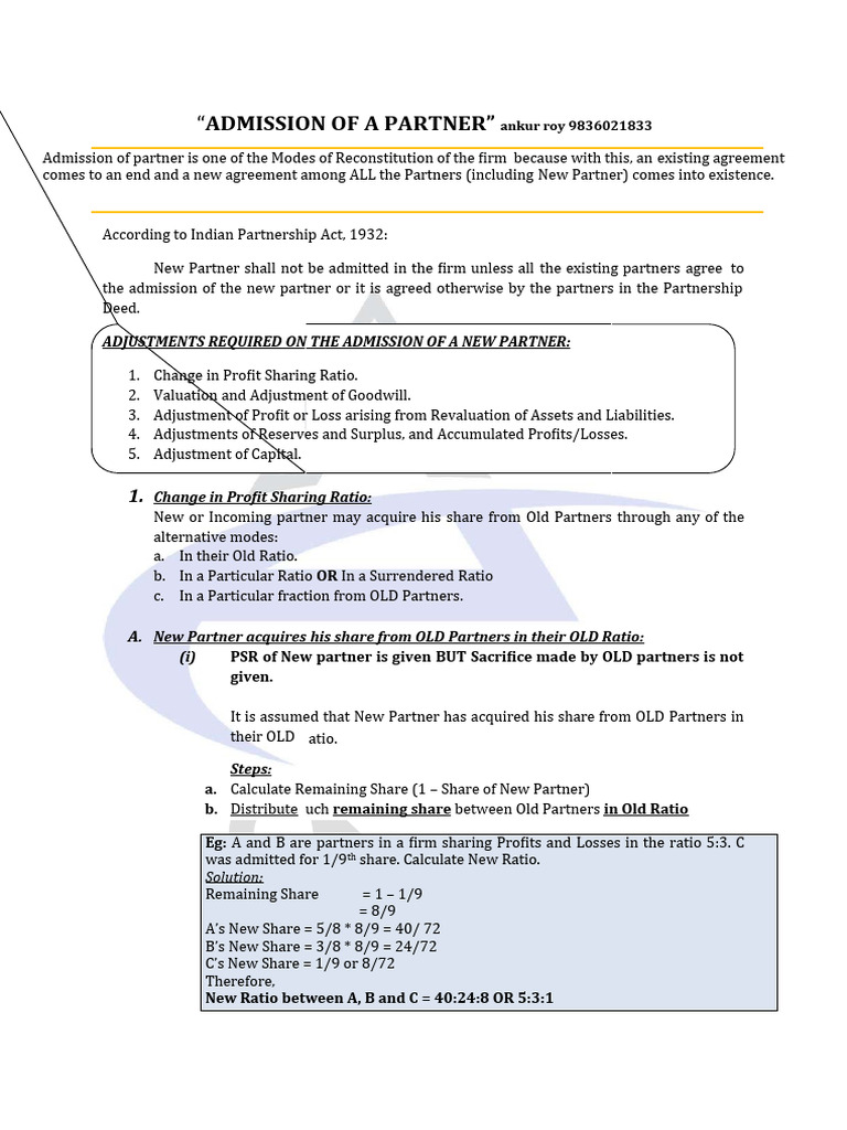 “ADMISSION OF A PARTNER” ankur roy 9836021833