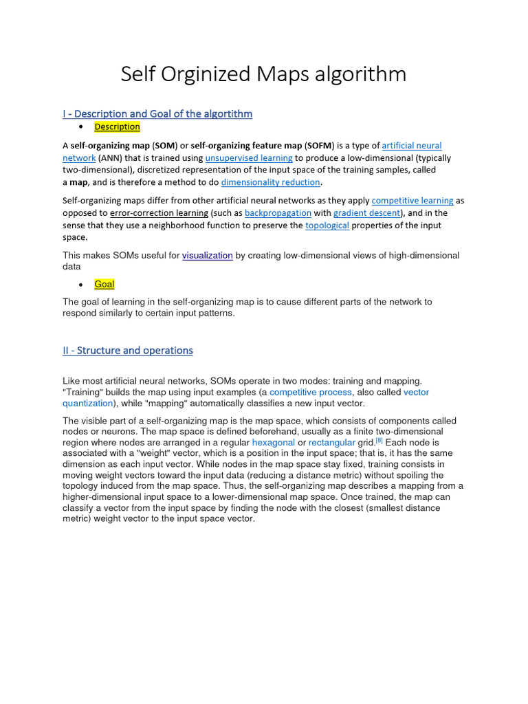 dimension as each input vector. While nodes in the map space stay fixed, training consists in
