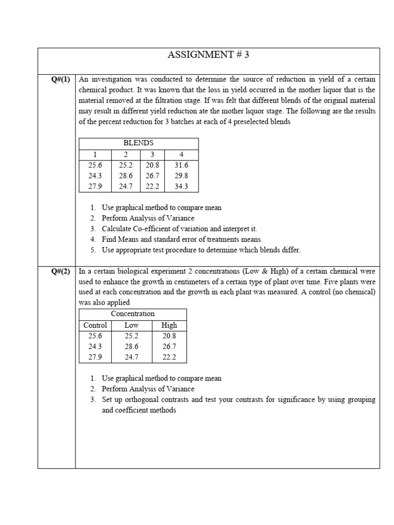 Q#(1) An investigation was conducted to determine the source of reduction in yield of a certain